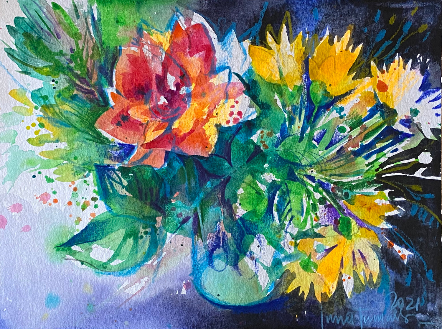 Акваграфика Мастеркласс Букет с розой