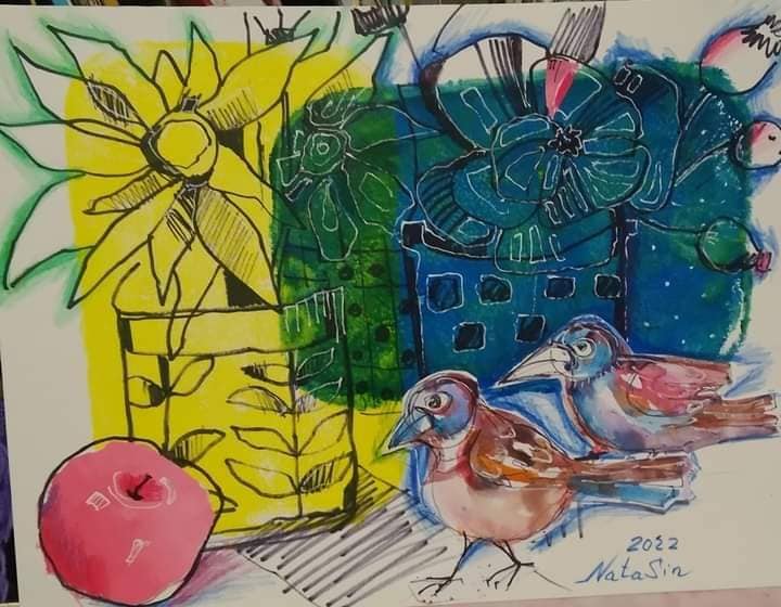 Практика в акварели, акриле, графике и цветных карандашах.