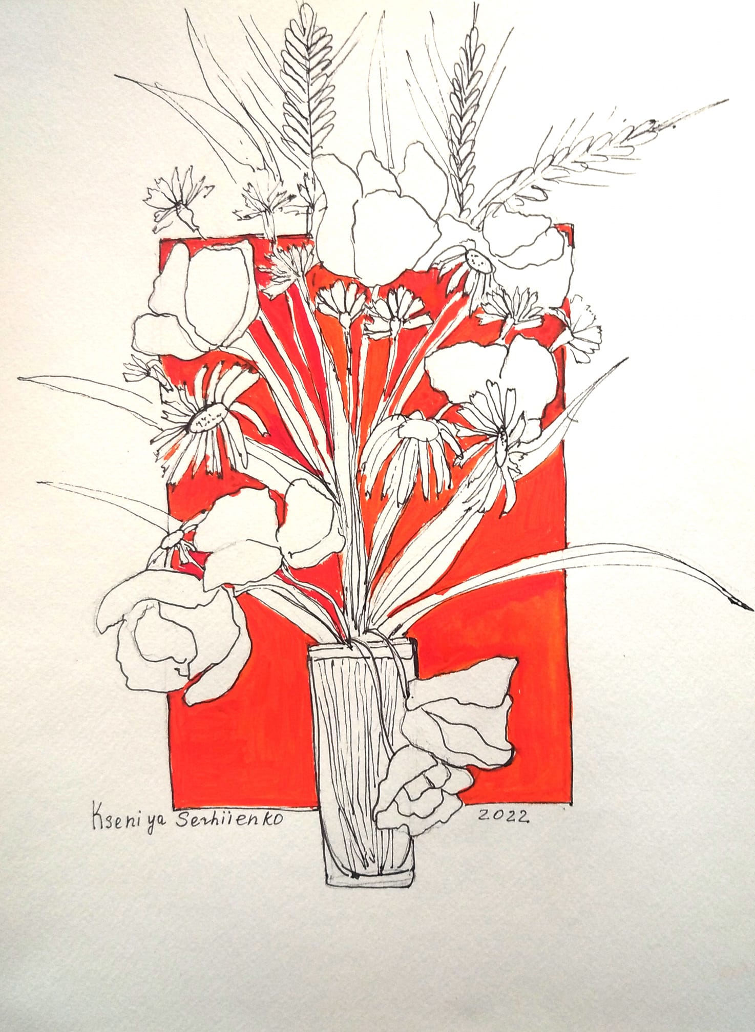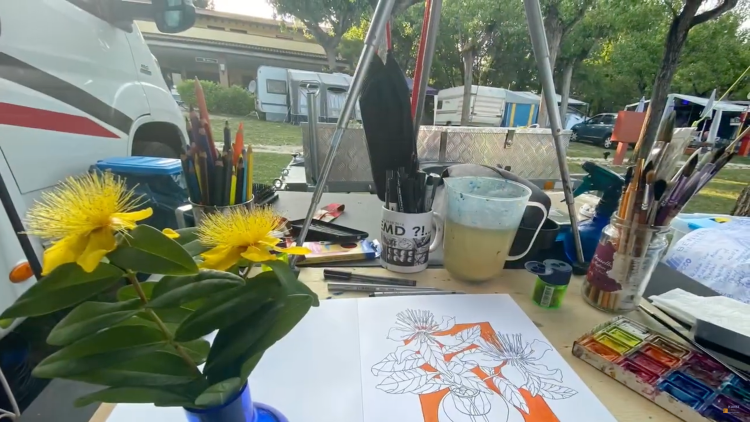 Желтые Итальянские цветы. Скетчинг. Графика. Поп Арт.Мастер-класс