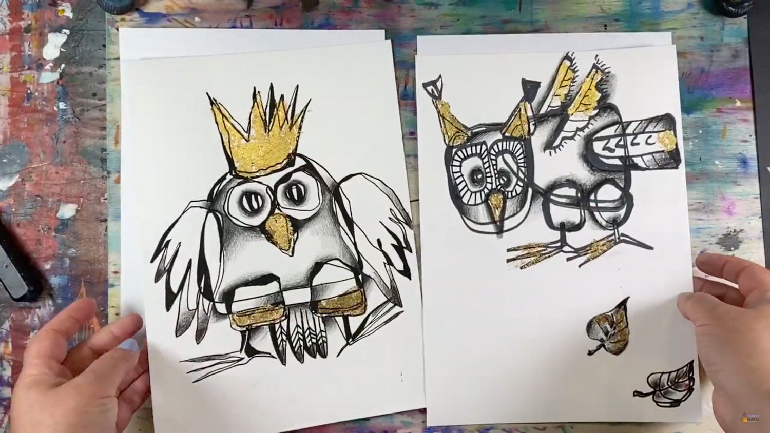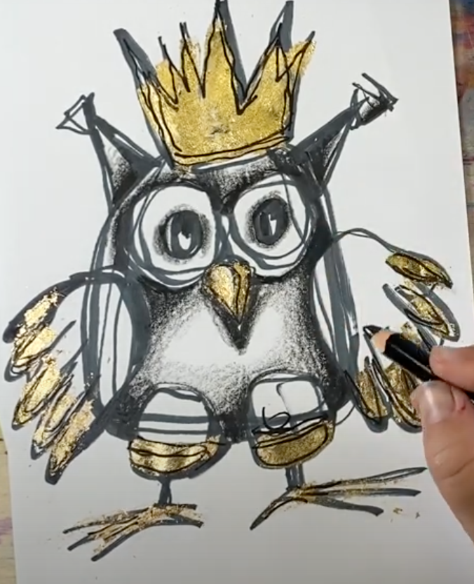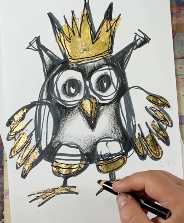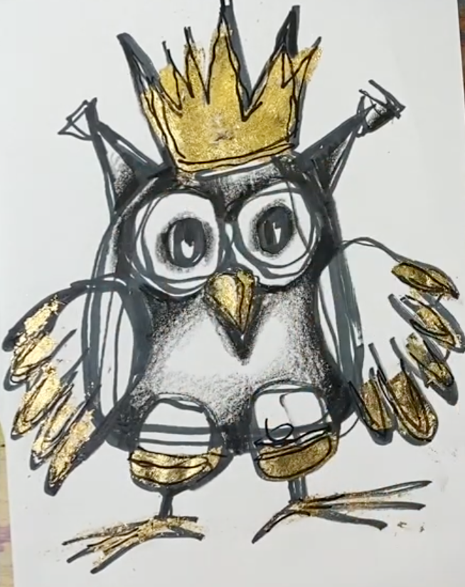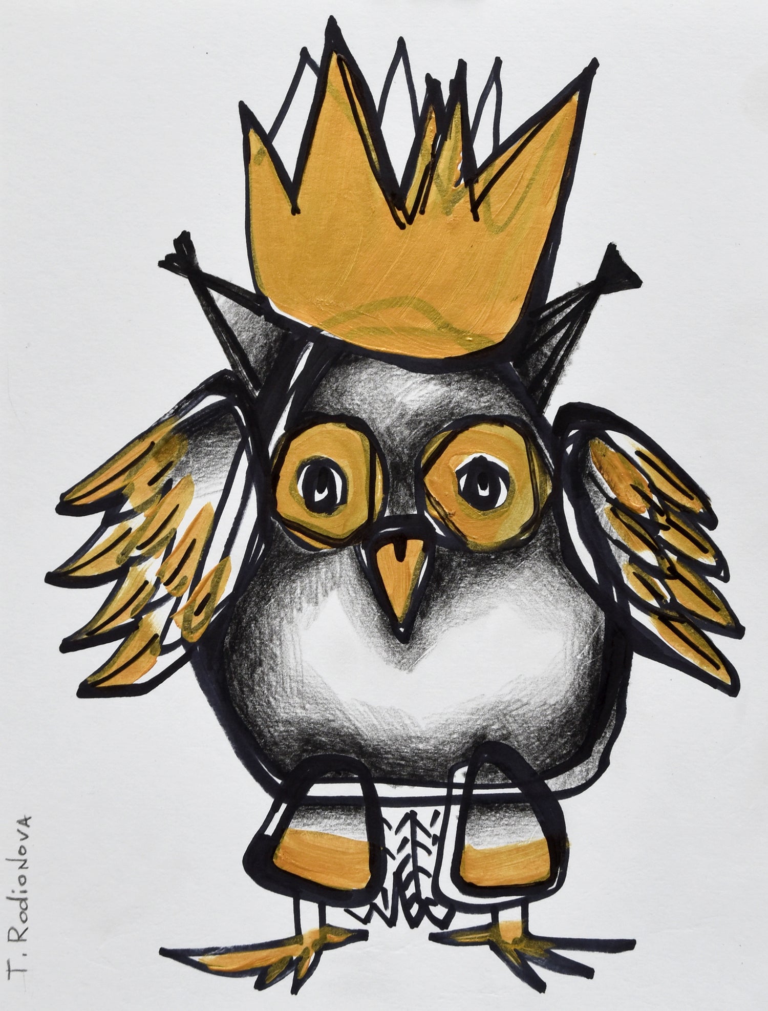 Добрая и мудрая сова в золотой короне получится у каждого, это будет самая уникальная и индивидуальная работа! Вы узнаете секрет свободной линии, и не смотря на то, что эта графика выглядит сложно, вы увидите, как легко можно сделать такой эффектный рисунок с золотыми акцентами.