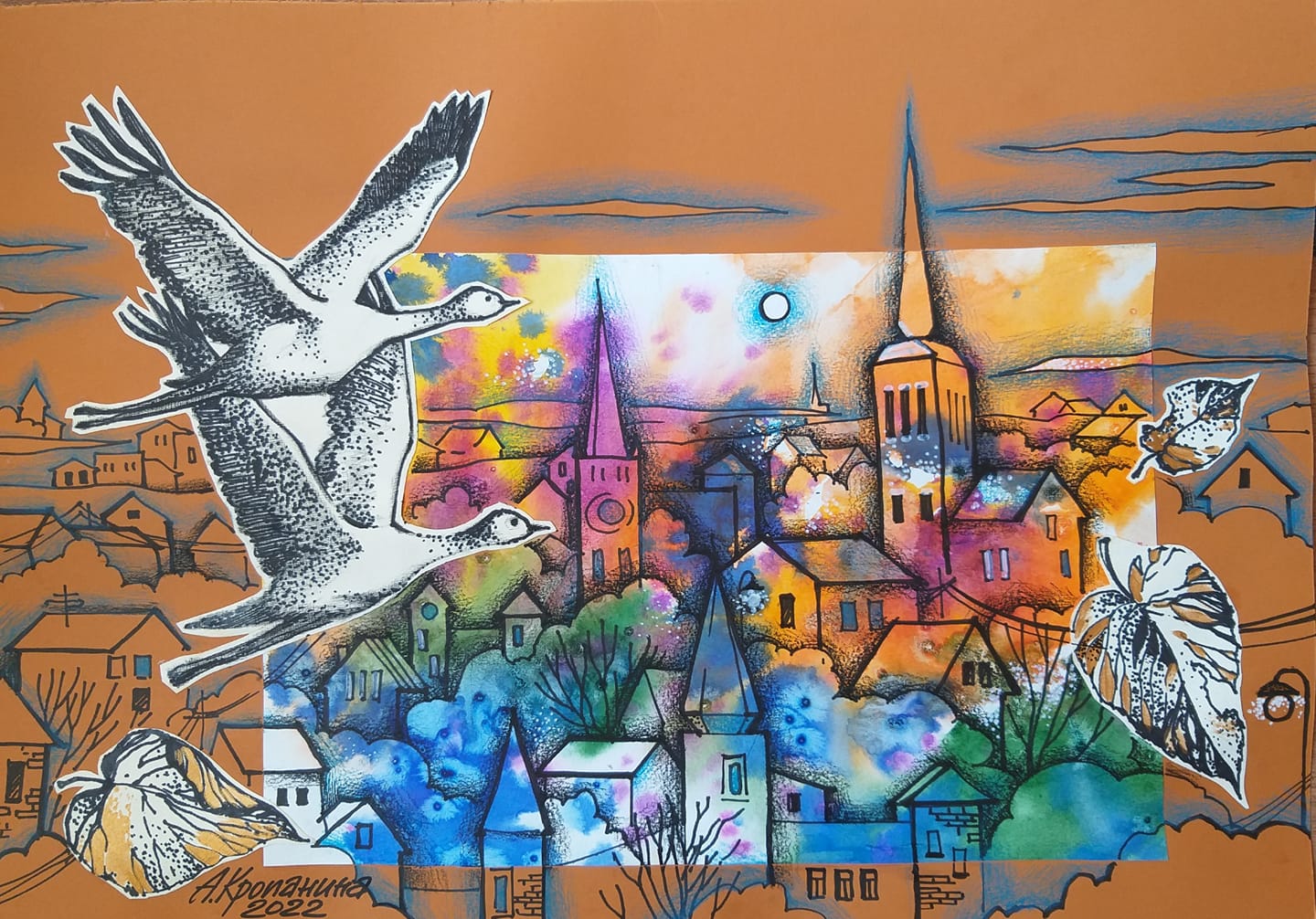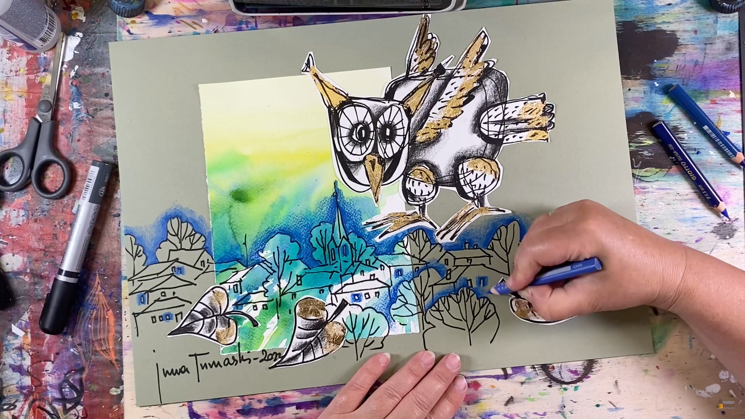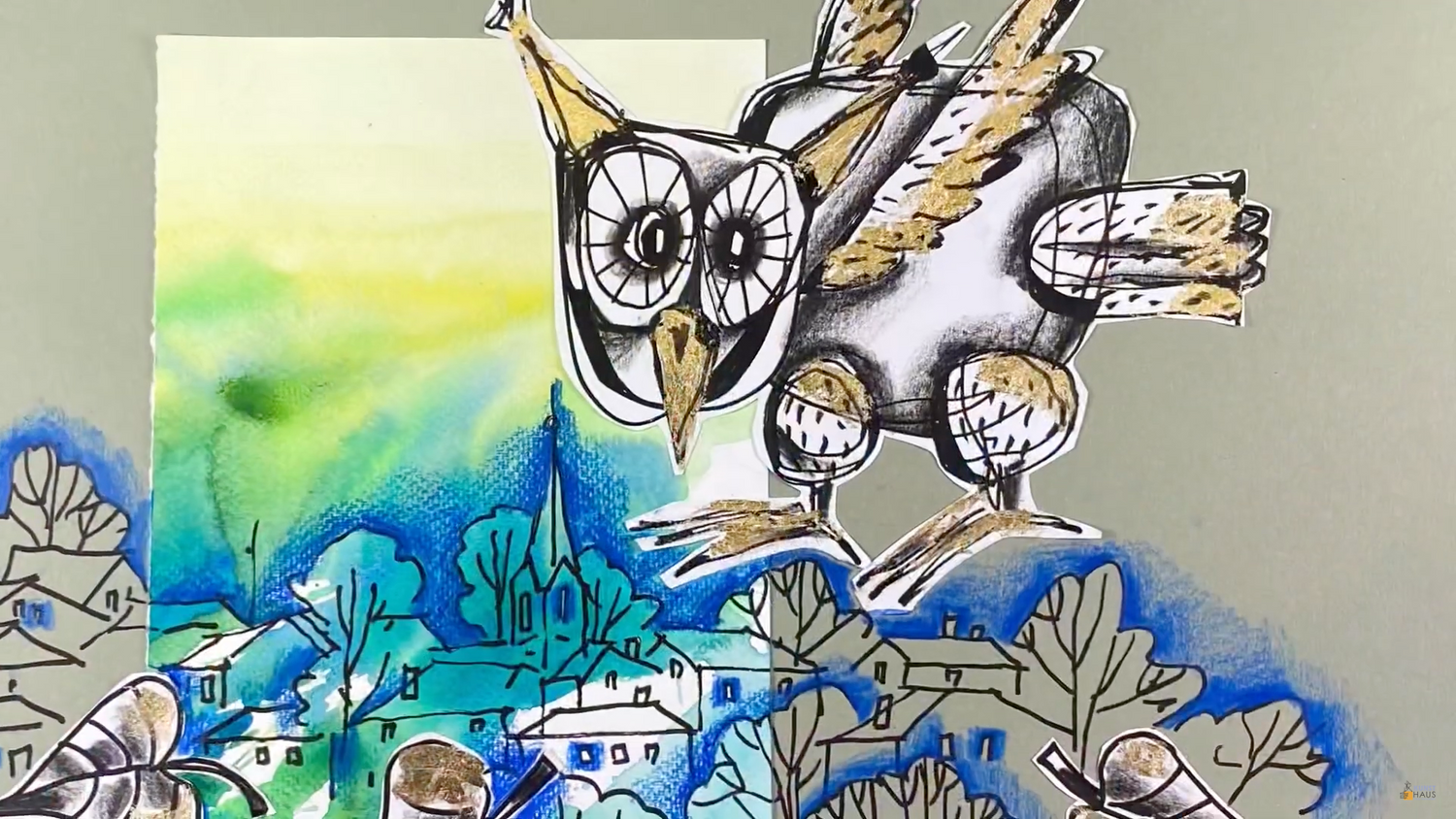 Свободный полет для фантазии реализуется водой, чернилами и кистью. В уроке мы сделаем свой уникальный фон для коллажа и используем летающую сову из предыдущего урока