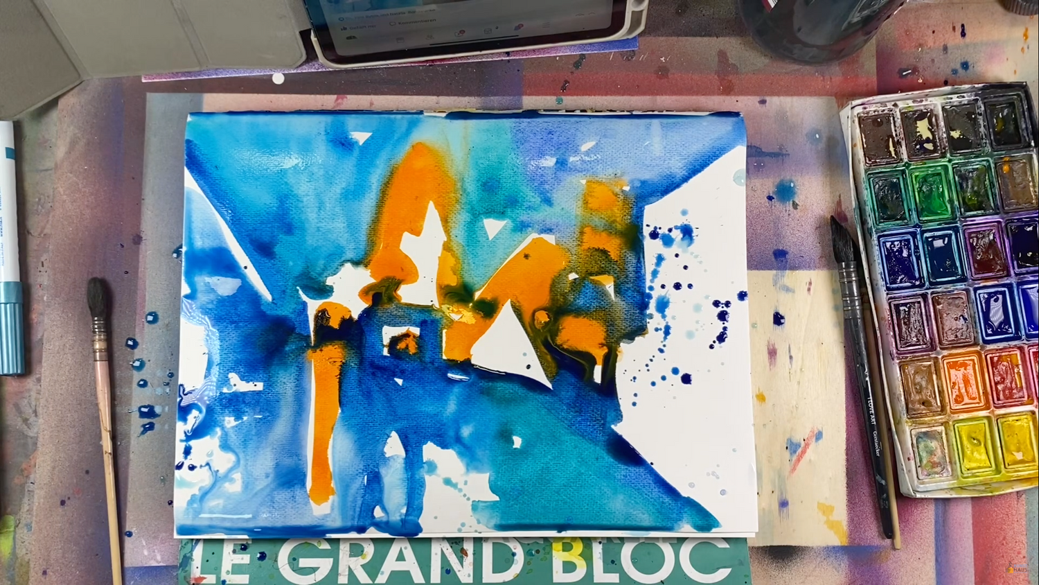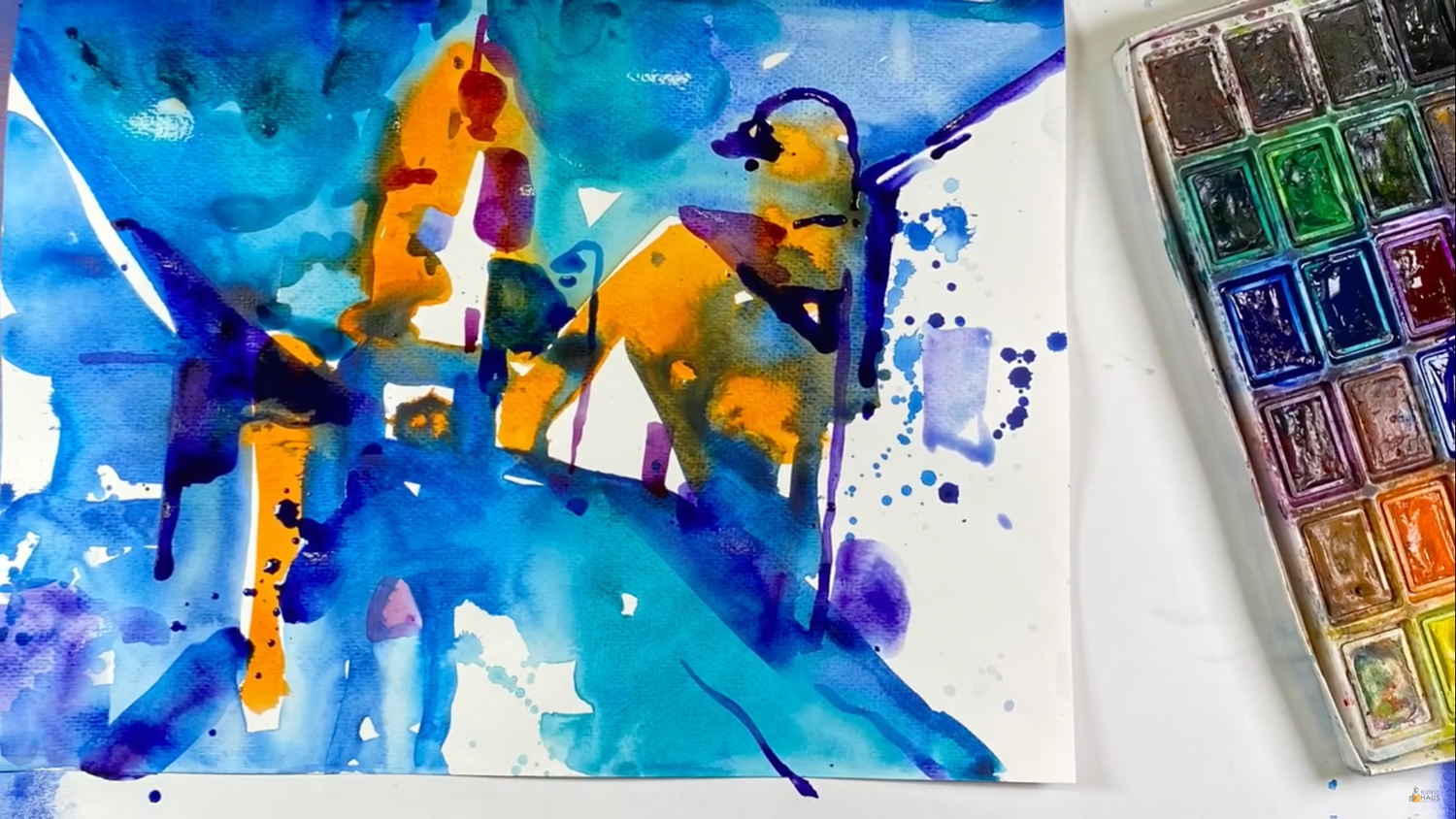 Второй шаг - это создаем пространство, используя крупные тональные пятна. Посмотрев урок, вы поймете, почему выразительные работы выигрывают благодаря правильно размещенному пространству в плоскости белого листа.