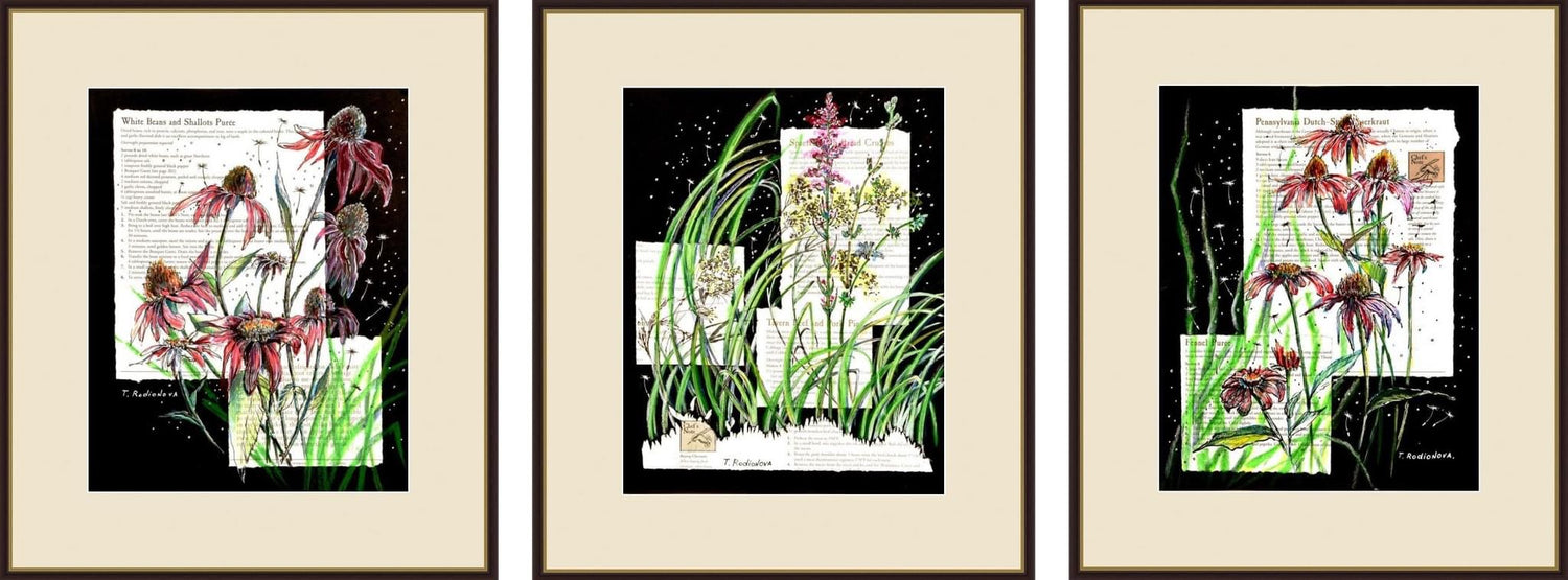 На Арт-марафоне Графика и иллюстрация каждый урок — это новая яркая классная техника, все его занятия с восторгом первооткрывателей и я постепенно вывела на триптих, и дипломные работы были потрясающими.