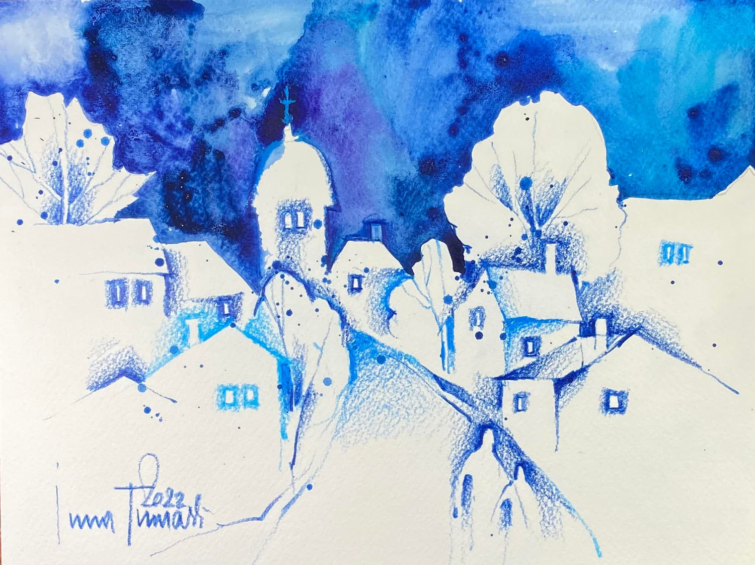 Два урока "Голубой пейзаж с ветром" и "Синий ветер. Композиция 2"