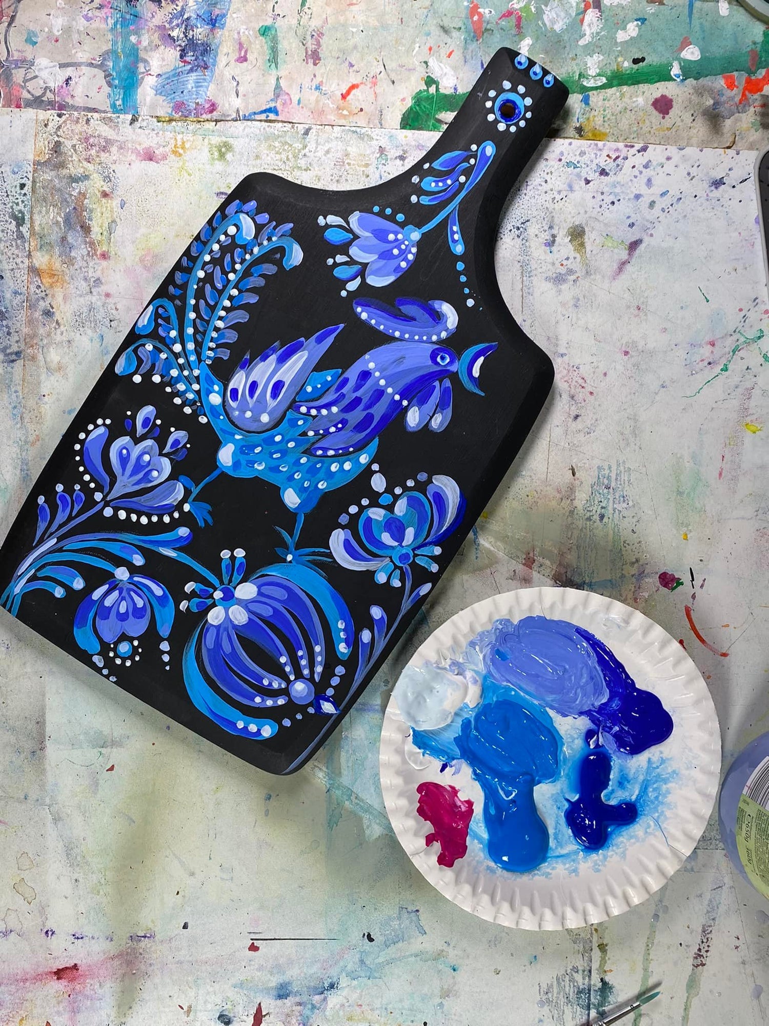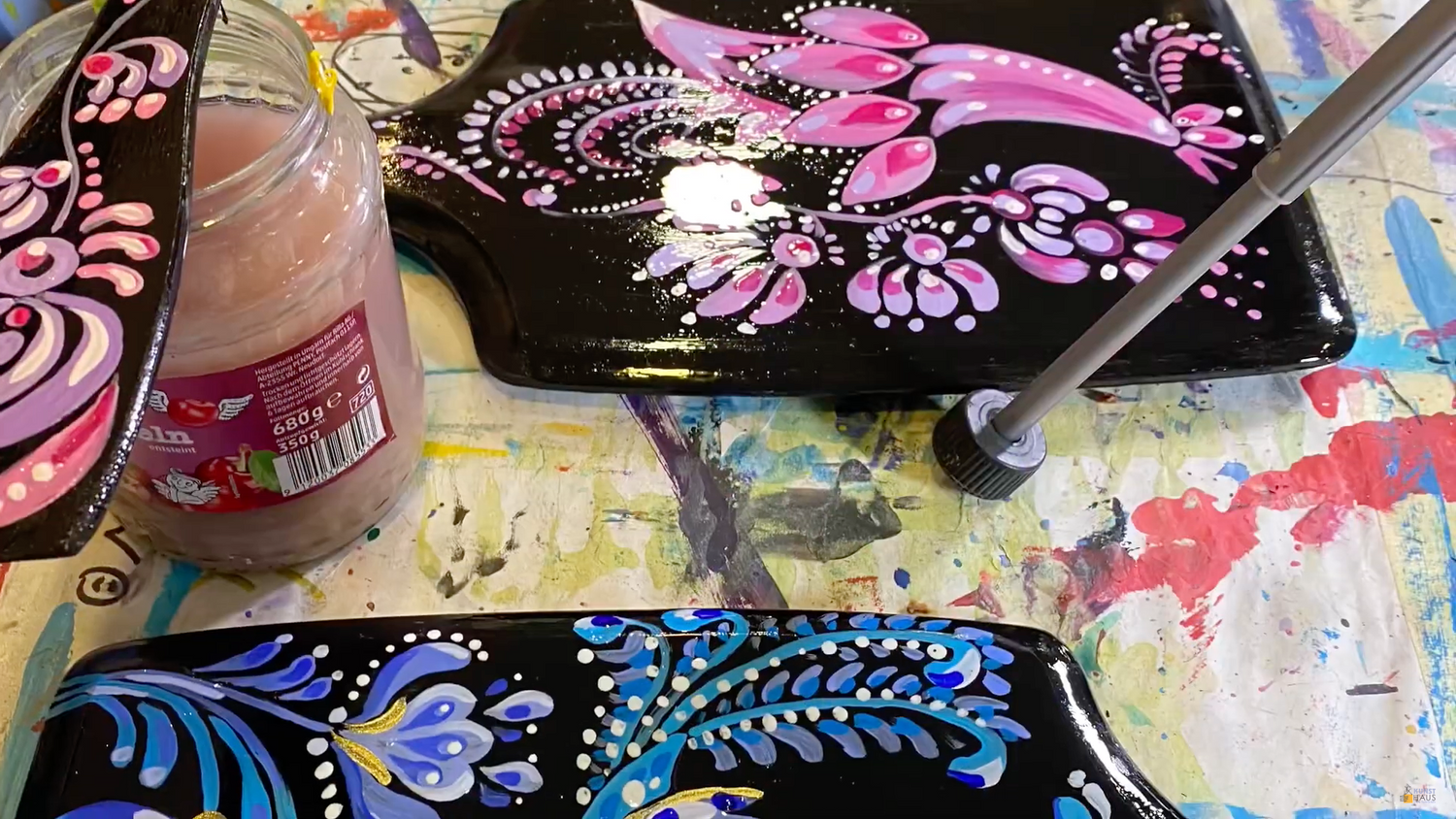 🎨 Может быть выполнена цветными глинами, растительными красителями, анилиновыми, масляными, акварельными, акриловыми красками, темперами, гуашью, с добавлением яичного желтка, молока, спирта, самодельными и фабричными кисточками, а также пальцами, пипетками, камышовыми палочками, на светлом, цветном или чёрном фоне, часто у каждого мастера собственный почерк, подход к стилизации, своя трактовка традиционных элементов росписи.