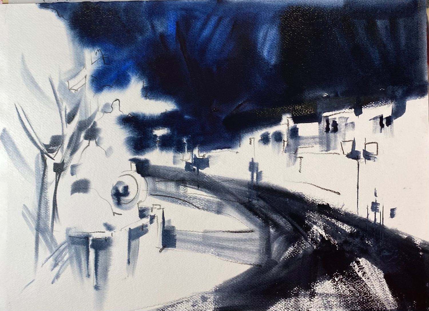 Акварельный - ночные пейзажи- показала на примере двух референсов как работать с пейзажем
