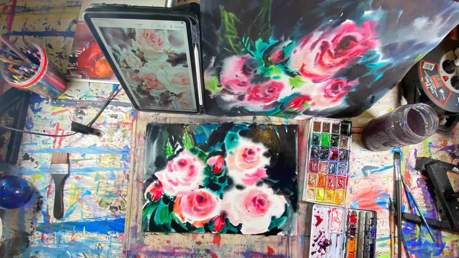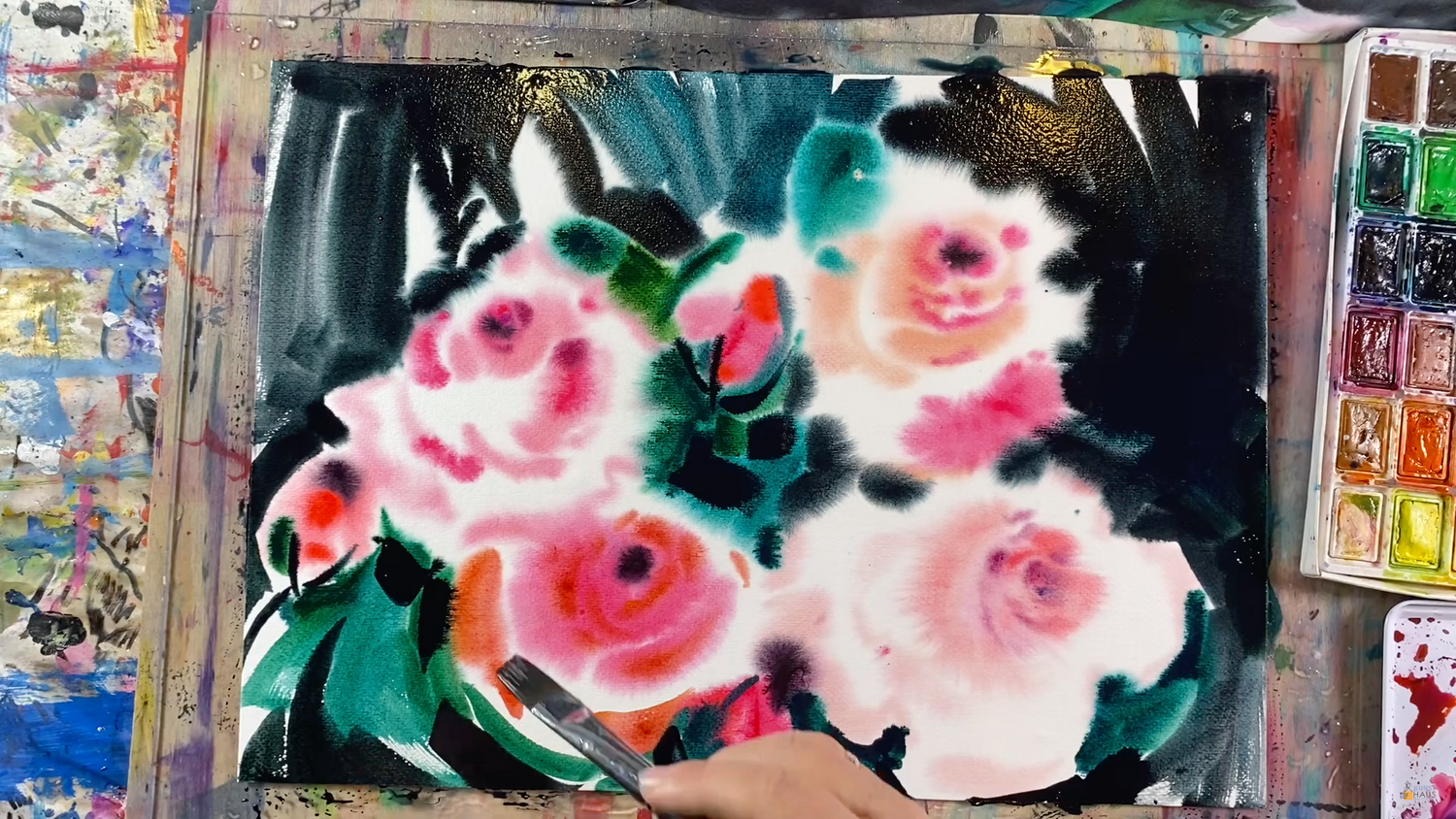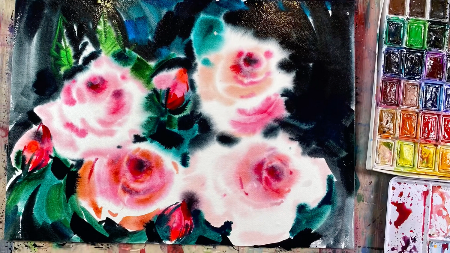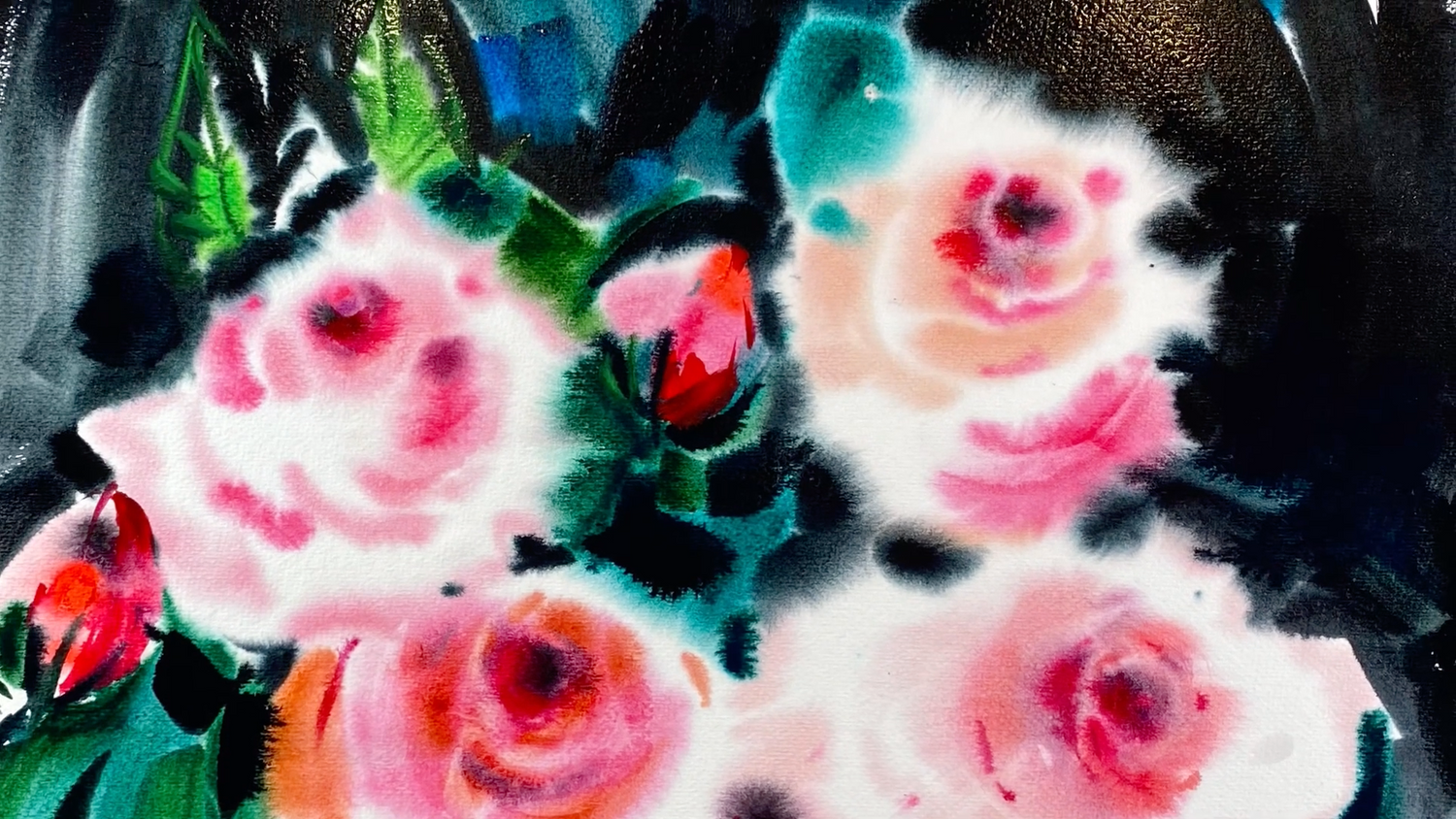 Нежные розы сделаем на темном насыщенном фоне, вы увидите и повторите со мной весь процесс написания прекрасных роз в технике «По-мокрому».