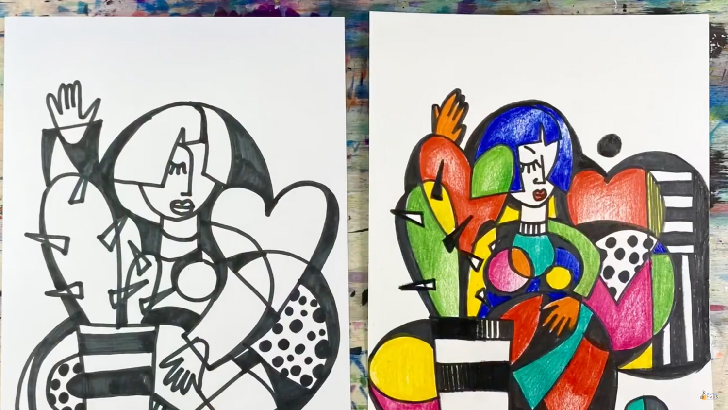 Создадим красивые яркие гипертрофированные формы. И у нас будет девочка-танцовщица с кактусом. Я покажу процесс от создания простых форм, до внедрения графических техник и сочетания с цветовыми акцентами.