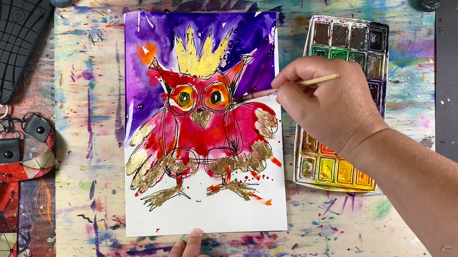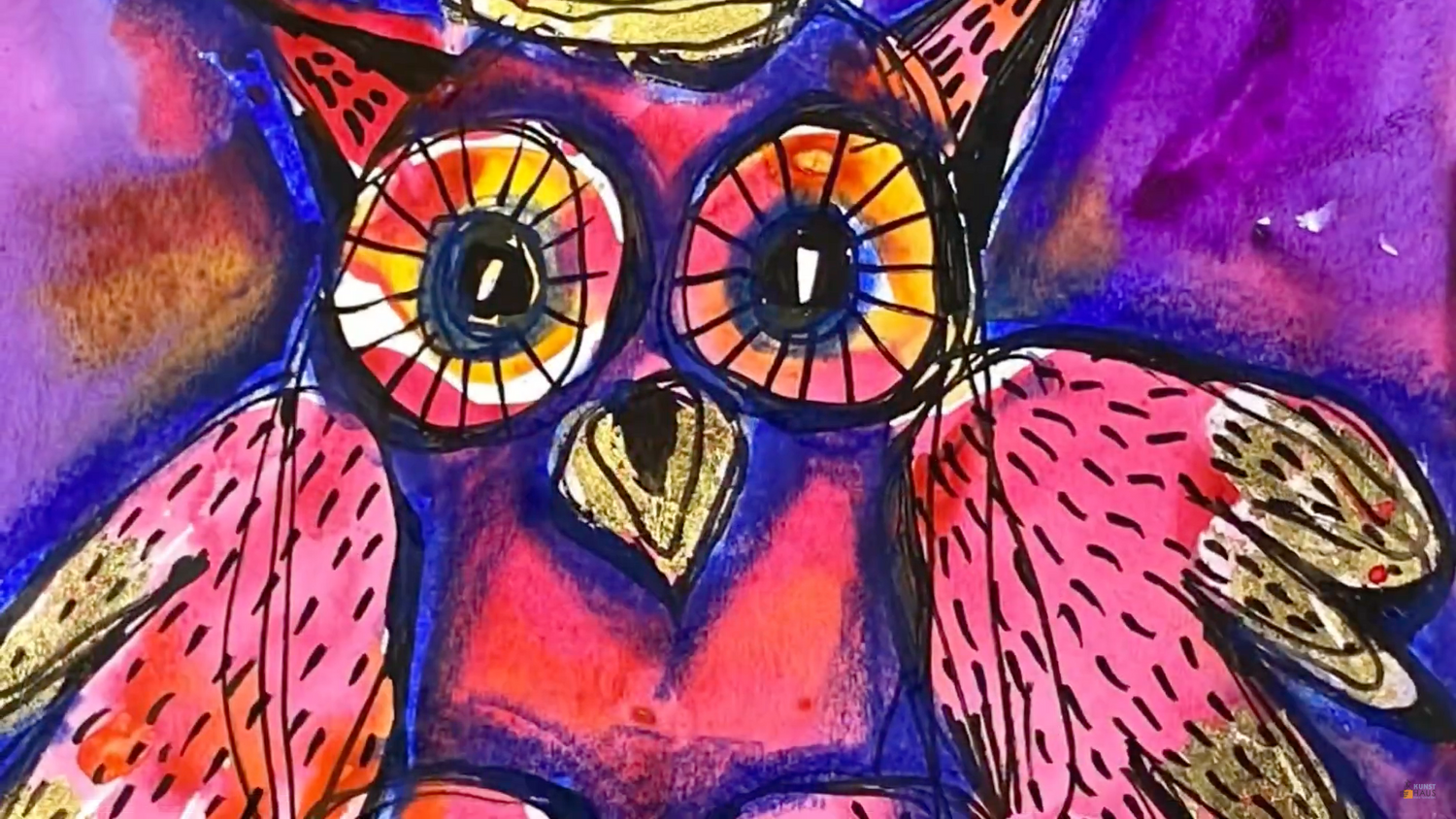 Берем холодную розовую акварельную краску для нашей яркой совы, далее вы узнаете как подмешивать дополнительные оттенки прямо на работе — такой прием имеет свои преимущества, вы увидите это на практике!